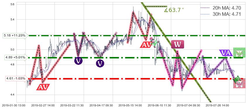 ♘ 阻力价格位4.89,可信任强度93.39%,距离最后交易2019-07-31 15:00形成的收盘价格4.66相差 +5.01%
