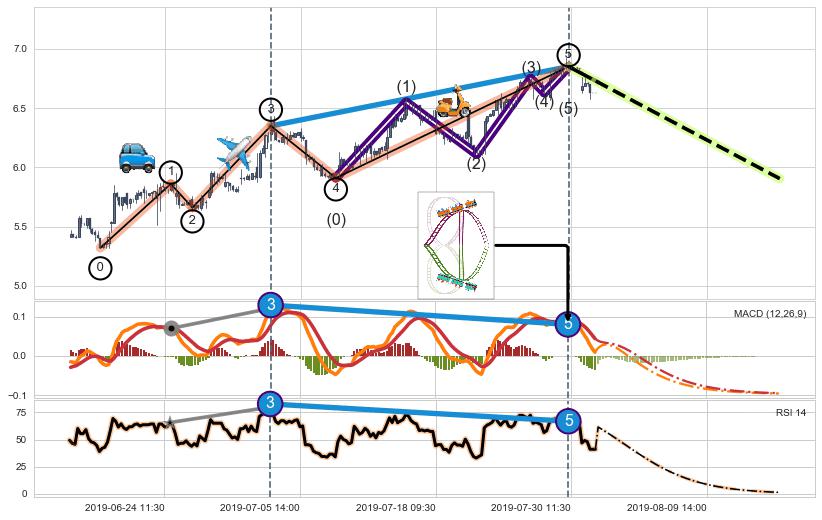 | 5 🅚:塔形顶 | 圆顶 ➕ 🌊:波浪理论猜想上涨浪5已形成,猜想后续形成回调abc下跌(均值回复) ☞ 看空信号 ⇥ 【🅚线】交织【图形】⇥ 综合量化分数: 49 | > |