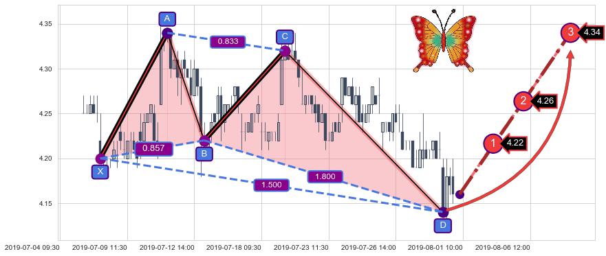 ➣ 已完成【蝴蝶】形态起点X: 07-08:09, 终点D: 07-31:09, 共103交易小时
