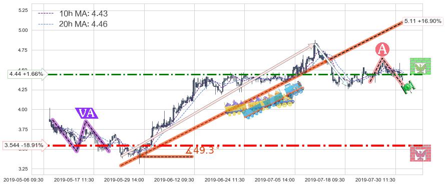 ♘ 阻力价格位4.44,可信任强度69.04%,距离最后交易2019-07-31 15:00形成的收盘价格4.37相差 +1.66%