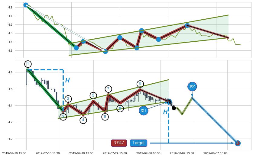 ➣ 最小中继整理跌幅→𝐇: 0.5000 (𝐇旗杆的长度:旗杆起点→顶点)
