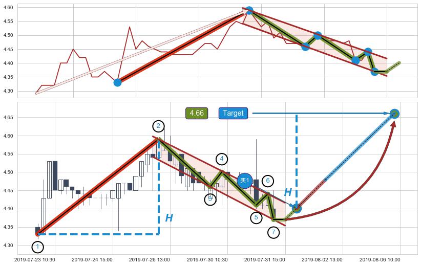 ➣ AI预测: 假定反转启动后, 第❶目标位置(08-07:12, 4.42)