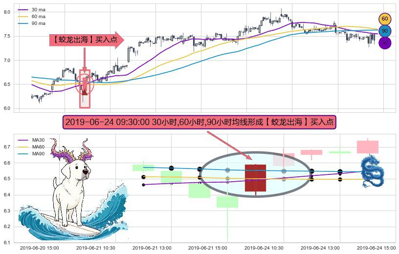 ⚀ 2019-06-24 09:30:00小时显现 30小时-60小时-90小时均线 【蛟龙出海】买入点 看多信号,后市看涨,买入