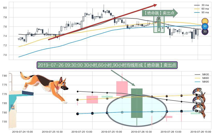 ⚀ 2019-07-26 09:30:00小时显现 30小时-60小时-90小时均线 【绝命跳】卖出点 看空信号,后市看跌,卖出