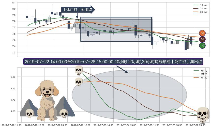 ⚀ 2019-07-22 15:00:00-小时至2019-07-26 15:00:00-小时显现 10小时-20小时-30小时均线 【死亡谷】卖出点 看空信号,后市看跌,卖出