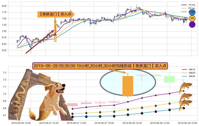 ⚀ 2019-06-28 09:30:00小时显现 10小时-20小时-30小时均线 【鱼跃龙门】买入点 看多信号,后市看涨,买入