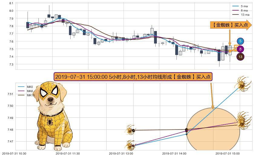 ⚀ 2019-07-31 15:00:00小时显现 5小时-8小时-13小时均线 【金蜘蛛】买入点 看多信号,后市看涨,买入