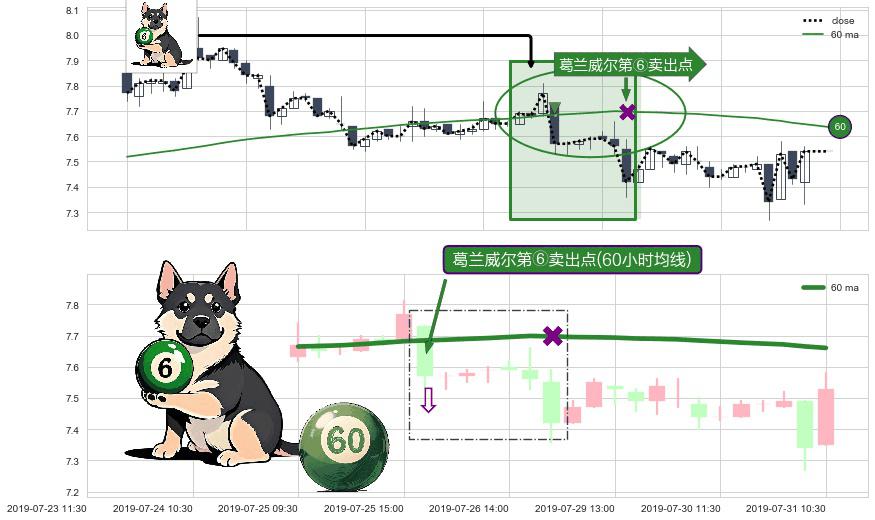 ⚀ 2019-07-26 09:30:00-小时显现 葛兰威尔均线 60小时均线 第⑥卖出点 走势反转见顶信号,后市看跌,卖出信号
