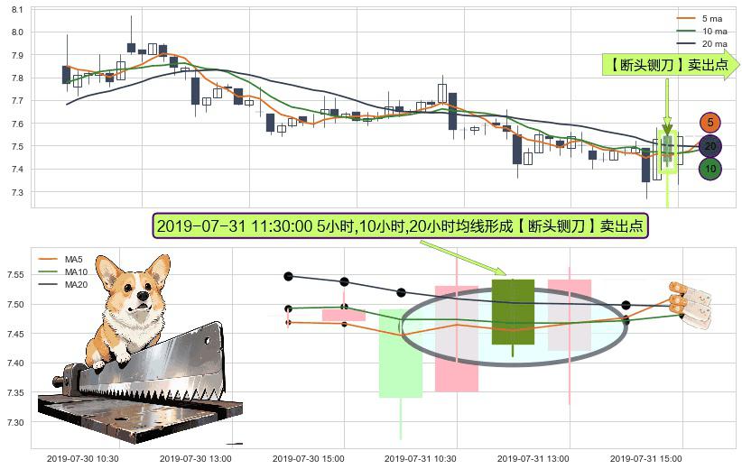 ⚀ 2019-07-31 11:30:00小时显现 5小时-10小时-20小时均线 【断头铡刀】卖出点 看空信号,后市看跌,卖出