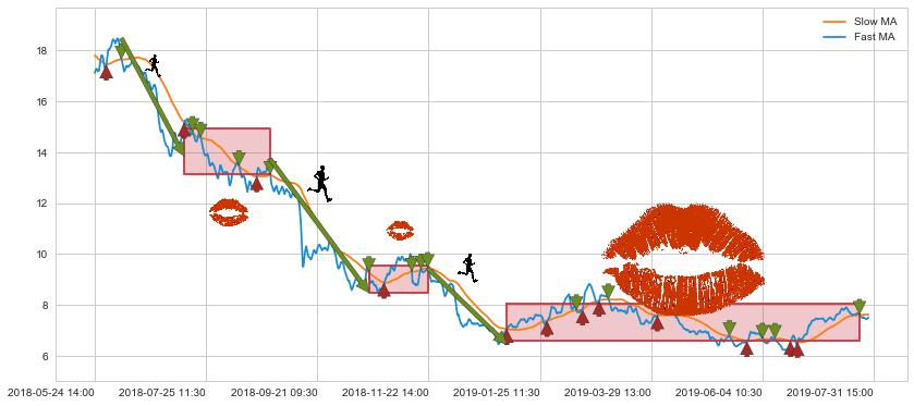07-13 10:30至08-28 11:30 慢线与快线多次接触,存在上下穿越,有缠绕
