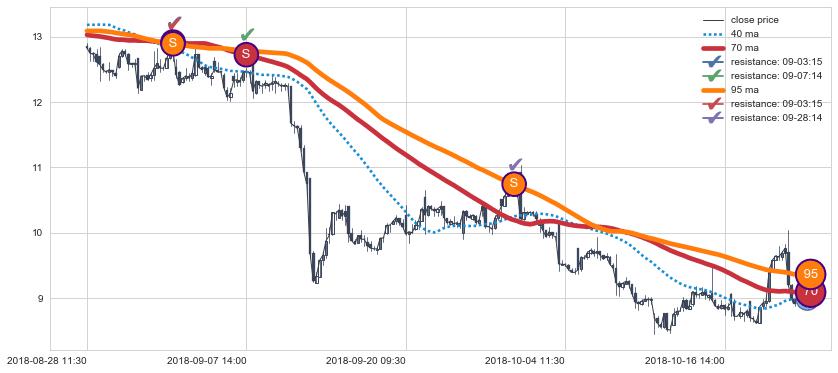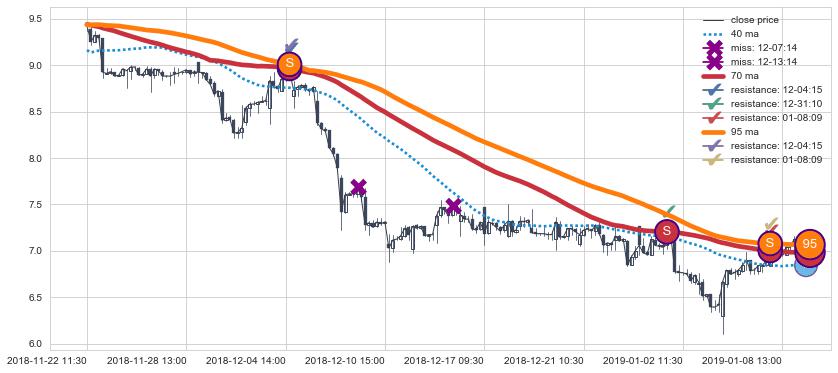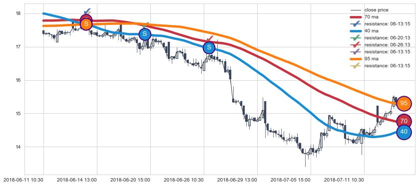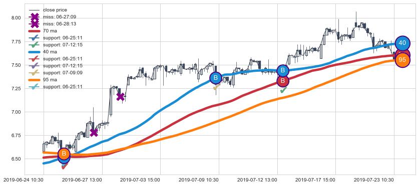 ➢ 最优均线组合共正确确认支撑阻力信号14处,正确确认率 70.00%