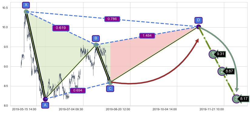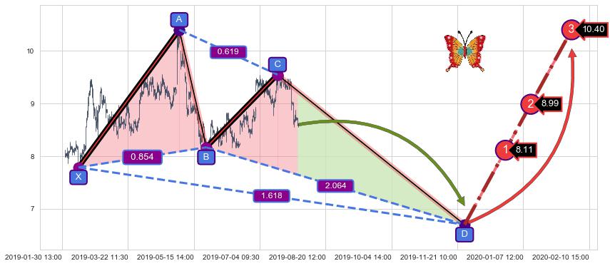 ➣ 未完成【蝴蝶】形态起点X: 02-15:11, 已到达C点: 07-17:09, 预测最终D点: 11-26:14, 共1169交易小时