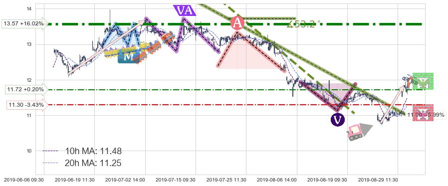 ♘ 阻力价格位11.72,可信任强度45.93%,距离最后交易2019-08-30 15:00形成的收盘价格11.70相差 +0.20%