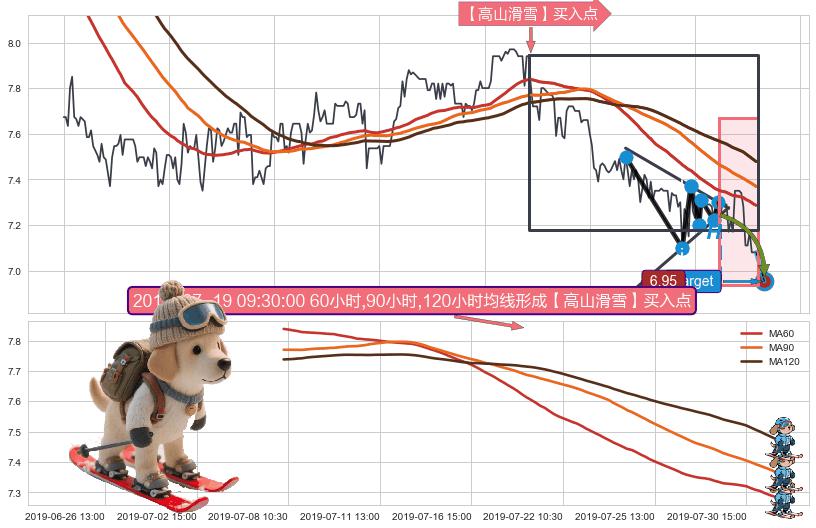 ♘ 在最后的下跌阶段2019-07-04 11:30至2019-07-31 15:00,存在 持续未破位的阻力位 ,阻力价格7.30,可信任强度82.03%,其距离最后价格7.08相差 +3.09%