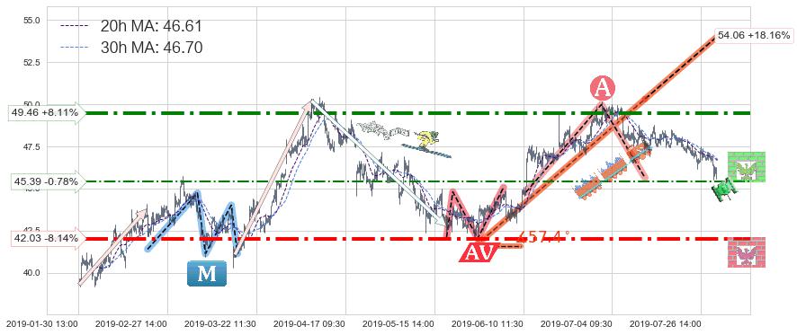 ♘ 支撑价格位42.03,可信任强度77.83%,距离最后交易2019-07-31 15:00形成的收盘价格45.75相差 -8.14%