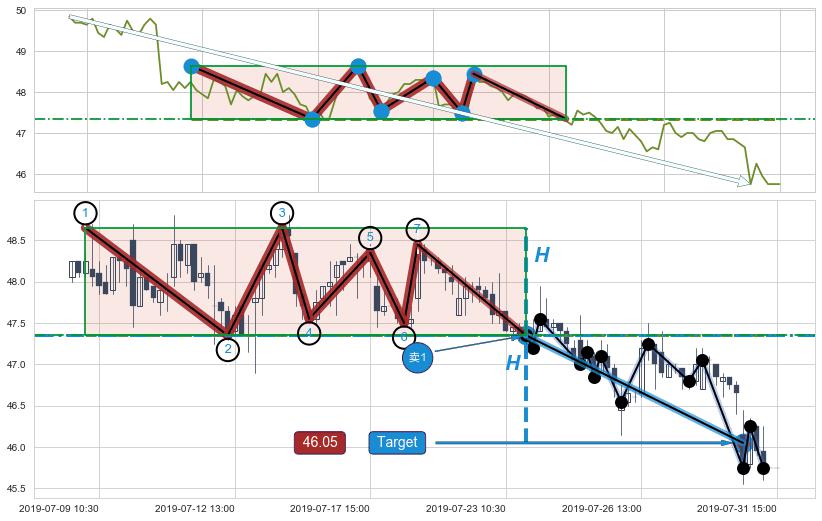 2019-07-23: 第一阻力位47.44起到了持续的支撑作用,有效地促进了价格的回升。