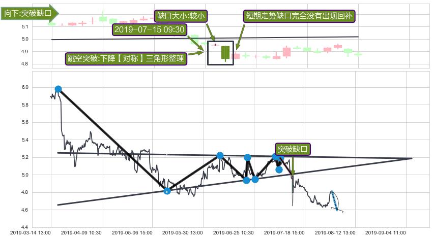 ➢ 2019-07-15 09:30形成:向下跳空【突破】缺口