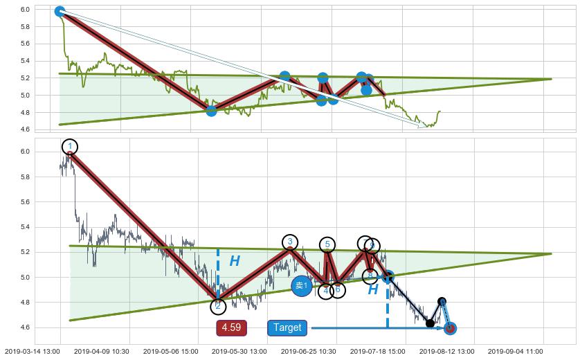 ➣ 【已确认突破】最后价格:4.81与最小【整理】第一目标价格→(08-02:13: 4.59 )相较: 下跌空间【较小】