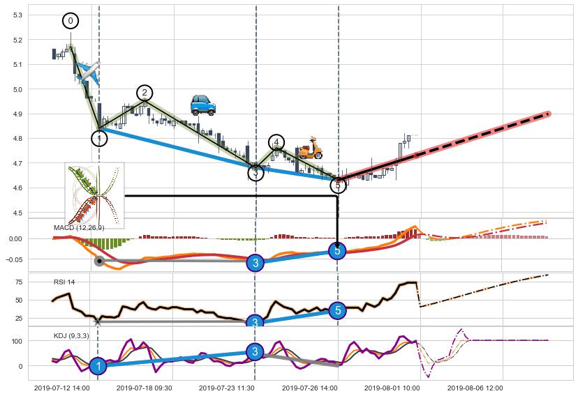 ➣ 1,3,5驱动浪MACD, RSI, KDJ走势都出现【常规背离】反转信号增强