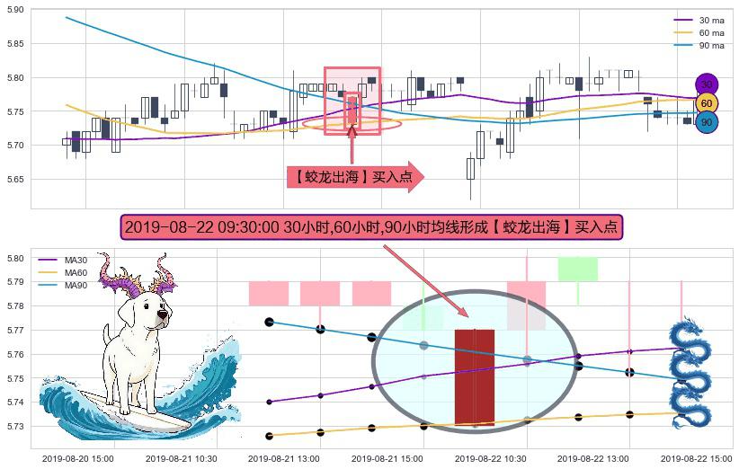 ⚀ 2019-08-22 09:30:00小时显现 30小时-60小时-90小时均线 【蛟龙出海】买入点 看多信号,后市看涨,买入