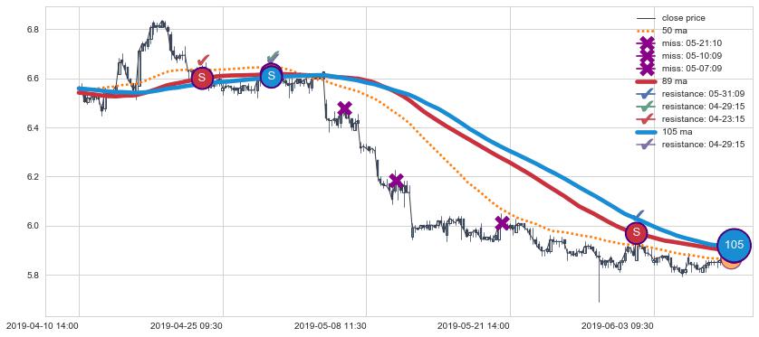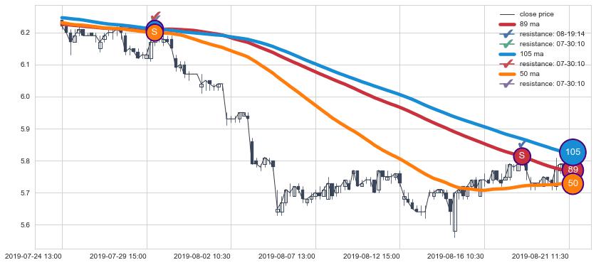 ⚀ 2019-07-24 14:00:00小时显现 10小时-20小时-30小时均线 【断头铡刀】卖出点 看空信号,后市看跌,卖出