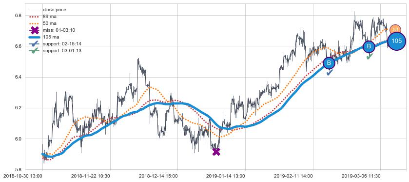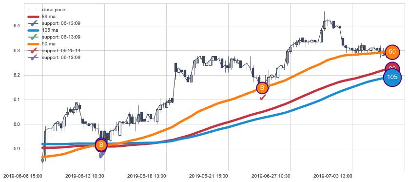 ⚀ 2019-07-17 15:00:00小时-2019-08-16 09:30:00小时显现 30小时-60小时-90小时均线 【高山滑雪】买入点 看多信号,后市看涨,买入