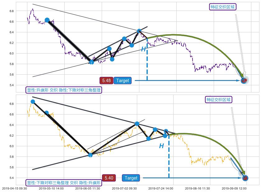 | 3 🅚:【金山谷】买入点 ➕ 📐:下降对称三角整理猜想预期下跌目标target即将达成,随后猜想强支撑来临,预期反弹上涨(均值回复) ☞ 看多信号 ⇥ 【均线】交织【图形】⇥ 综合量化分数: 74 | > |
