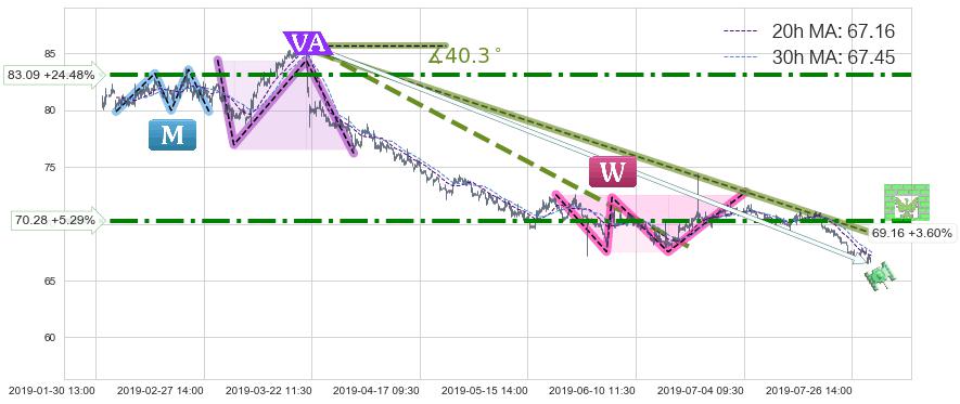 ♘ 阻力价格位70.28,可信任强度80.04%,距离最后交易2019-07-31 15:00形成的收盘价格66.75相差 +5.29%