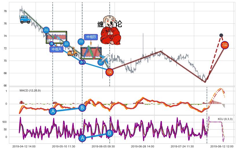 | 2 🅚:【高山滑雪】买入点 ➕ ☯️:缠论买卖点下降缠:临近3买-猜想击穿突破3买后延续上涨趋势(大周期趋势均值回复后小周期持续趋势跟踪) ☞ 看多信号 ⇥ 【均线】交织【图形】⇥ 综合量化分数: 75 | > |