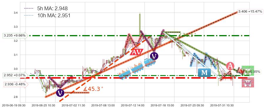 ➢ 预测:2019-08-01 12:00,【小幅反弹】稳定目前下跌趋势的前提下,预测价格:2.965