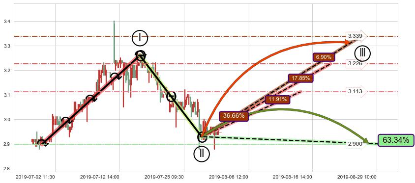 ➢ 循环浪继续向上【最低】位置(08-15:11, 3.113),匹配聚类样本比例32.50%, 可能性概率11.91%