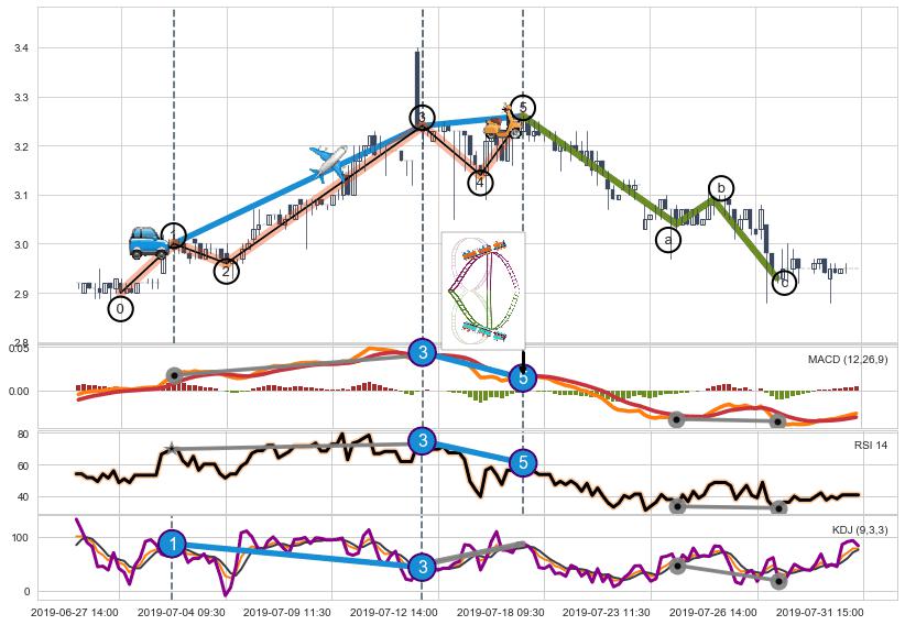 ➢ a,c调整浪MACD, RSI, KDJ走势都【未出现】背离,abc走势延续, 5浪反转概率增强