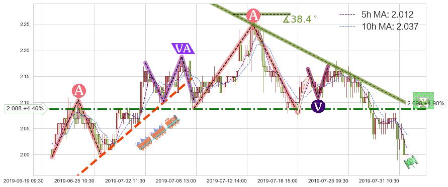 2019-07-18: 第一阻力位2.088有效抑制了下跌浪,成功阻止了价格的继续下跌。