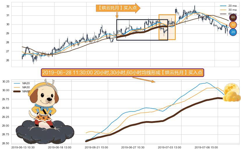 形态多维评估: ⚀ 2019-06-19 15:00:00小时-2019-07-09 15:00:00小时显现 20小时-30小时-60小时均线 【烘云托月】买入点 看多信号,后市看涨,买入