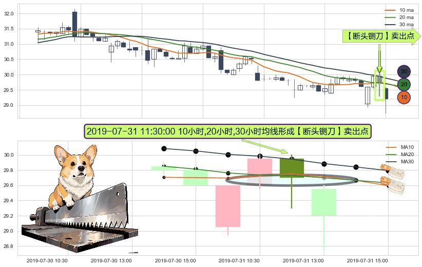 形态多维评估: ⚀ 2019-07-31 11:30:00小时显现 10小时-20小时-30小时均线 【断头铡刀】卖出点 看空信号,后市看跌,卖出