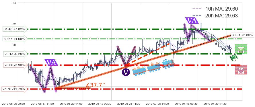 ♘ 阻力价格位30.57,可信任强度63.07%,距离最后交易2019-07-31 15:00形成的收盘价格29.20相差 +4.68%