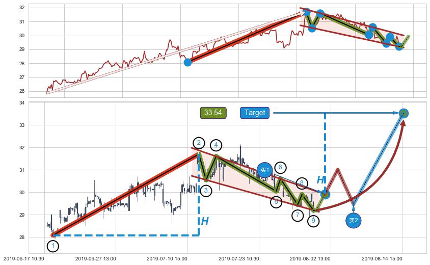 ➣ 最小中继整理涨幅→𝐇: 3.614 (𝐇旗杆的长度:旗杆起点→顶点)