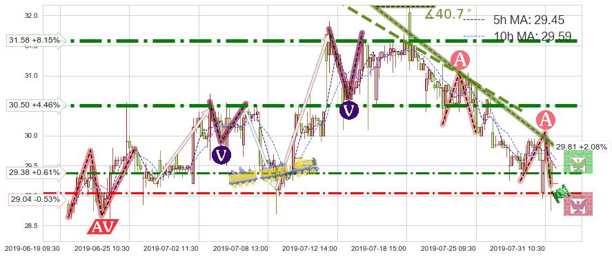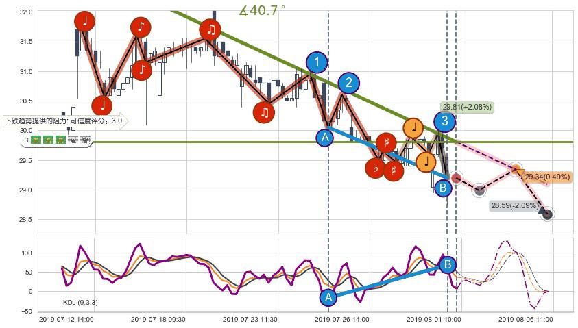 ➣ 预测:2019-08-05 10:00,【小幅反弹】稳定目前下跌趋势的前提下,预测价格:29.34