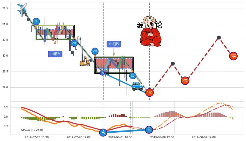 ➣ 【未完成】缠论 起点:07-19:10, 完成第1中枢A,完成第2中枢B,到达07-31:15