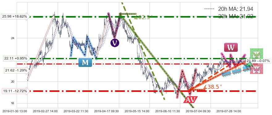 ♘ 支撑价格位19.11,可信任强度95.46%,距离最后交易2019-07-31 15:00形成的收盘价格21.90相差 -12.72%
