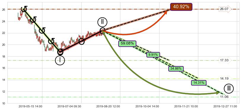 ➣ 循环浪继续向下【平均值】位置(11-21:14, 14.19),匹配聚类样本比例59.00%, 可能性概率34.86%
