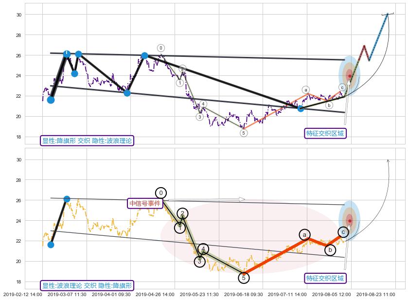 从2019-03-08 15:00至2019-03-28 14:00,共包含84个小时,阶段股价下跌-2.37%,阶段股价变动位移路程比: 1 : 21