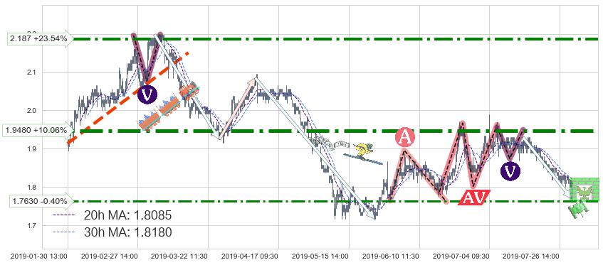 ♘ 阻力价格位1.9480,可信任强度93.07%,距离最后交易2019-07-31 15:00形成的收盘价格1.7700相差 +10.06%