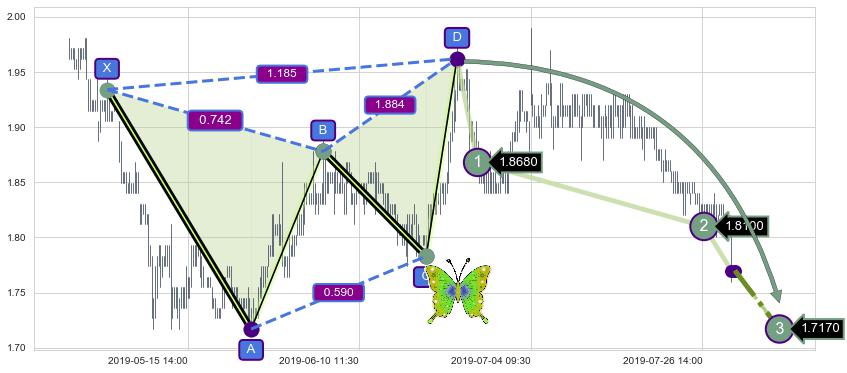 ➣ 已完成【蝴蝶】形态起点X: 05-02:15, 终点D: 06-21:15, 共205交易小时