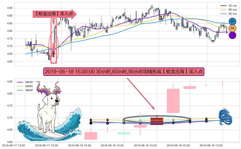 ⚀ 2019-06-18 15:00:00小时显现 30小时-60小时-90小时均线 【蛟龙出海】买入点 看多信号,后市看涨,买入