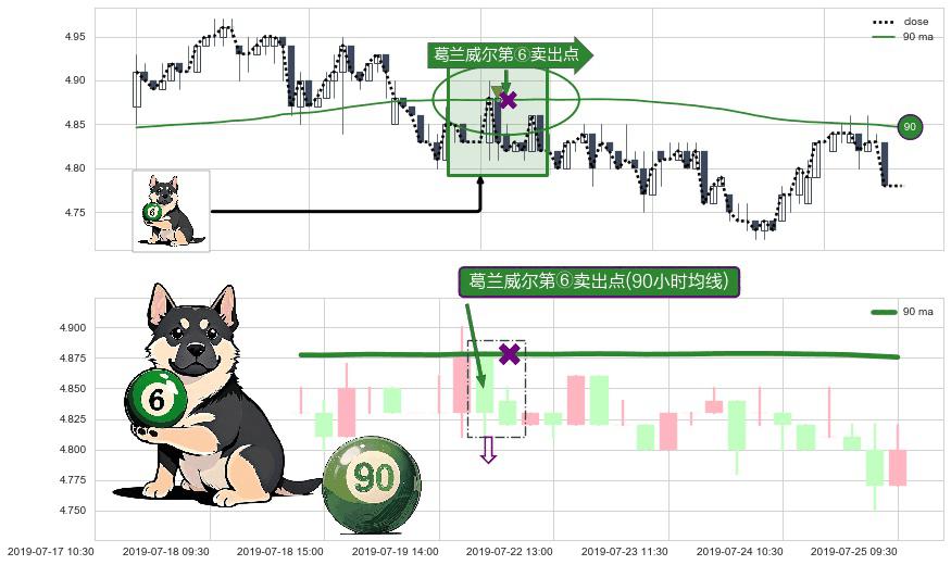 ⚀ 2019-07-22 09:30:00-小时显现 葛兰威尔均线 90小时均线 第⑥卖出点 走势反转见顶信号,后市看跌,卖出信号