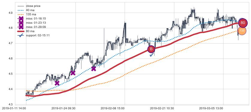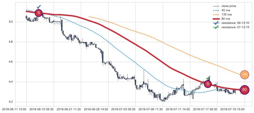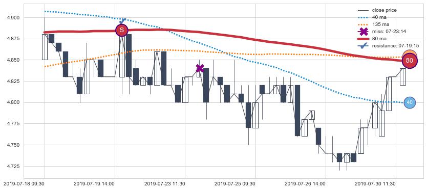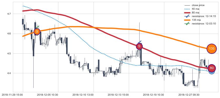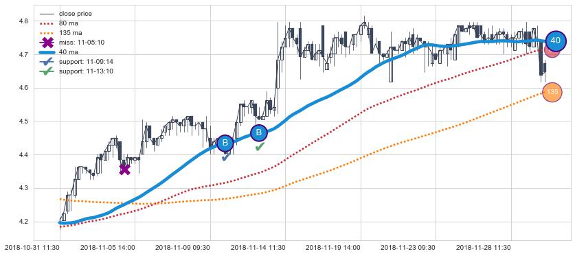 ⚃ 在破位点附近ma走势明显平稳迹象,稍后的走势中ma下垂迹象也出现,信号【可信度中等偏上】