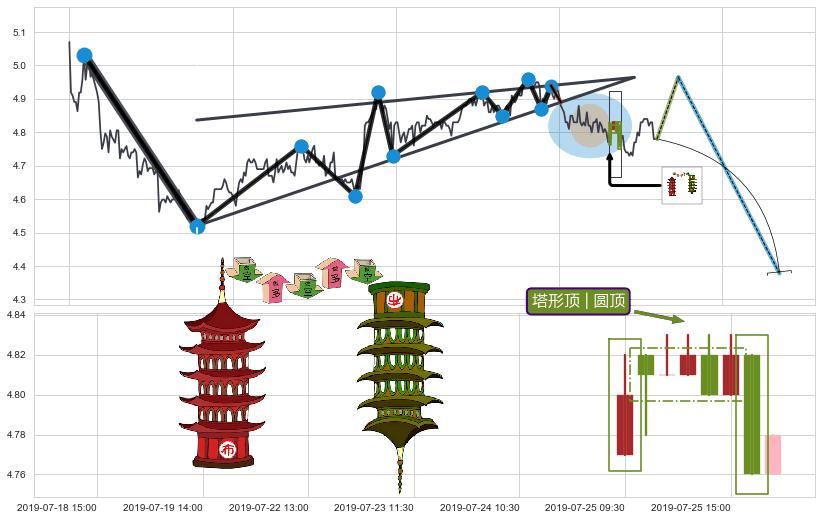 | 29 🅚:塔形顶 | 圆顶 ➕ 📡:谐波赛福猜想c点拉升击穿越过b点后泄力性下沉下跌(均值回复) ☞ 看空信号 ⇥ 【🅚线】交织【图形】⇥ 综合量化分数: 44 | > |