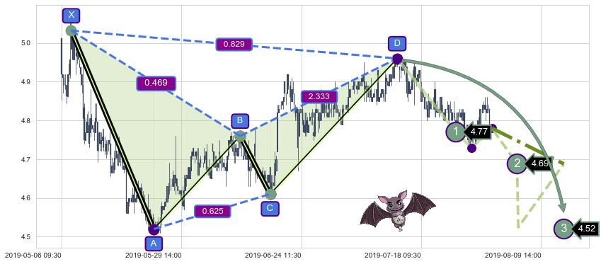 ➣ 已完成【蝙蝠】形态起点X: 05-07:11, 终点D: 07-12:14, 共273交易小时