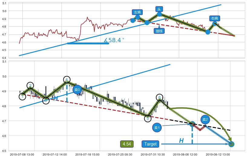 ➣ 最小反转跌幅→𝐇: 0.134304 (头部与颈线垂直距离)